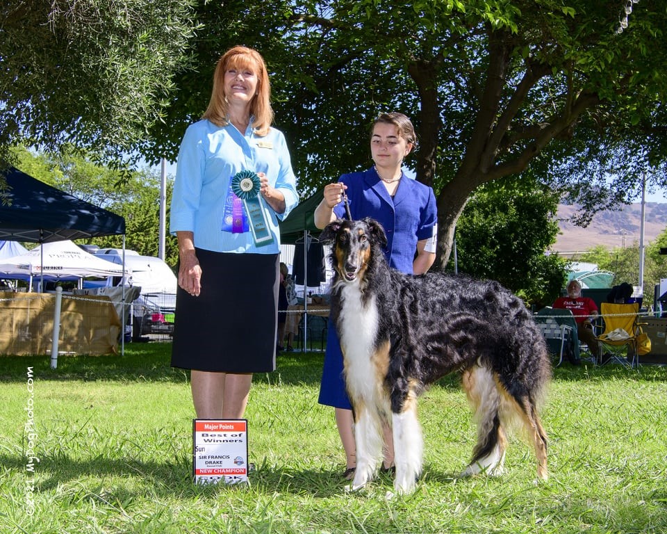 Gunner is also from the "Show and Tell" litter, sired by GCh. Estet Classic Tihomir out of GCh. Sunburst Ellicit Dream, JC. He flew from San Diego to his new home near San Jose CA at the age of 3 months - never batting an eye about the adventure. Gunner stepped off the plane as happy as he was when he left! His personality delights everyone because he makes it clear that he's up for whatever you want to do. Covid delayed his show career, but once things opened back up, he wasted no time in completing his Championship. Along the way, he met up with an adorable Junior Handler and the two of them became quite the item at shows - both in the breed ring and in the Juniors competition. Gunner and Audrey earned a BISS and his Grand Championship in 2023, and will continue to work towards his Grand Champion-Bronze in 2025.